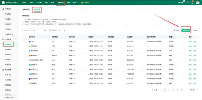 在【考勤分组】和【班次管理】中,添加工厂所有班次,并创建“排班制”考勤组,勾选“自动排班”。